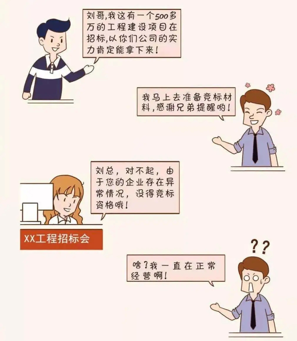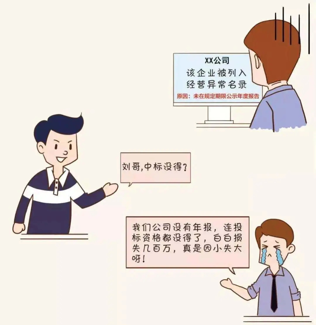 僅剩 7天 02企業(yè)合作信用受疑 現(xiàn)在是信用社會(huì),信用對(duì)于人和企業(yè)來說都至關(guān)重要,大家都喜歡和有信用的人交往、合作。 被列入經(jīng)營異常名錄,你看看誰還找你合作! 03經(jīng)營活動(dòng)受限 經(jīng)營異常名錄信息現(xiàn)在也是 銀行等金融機(jī)構(gòu)貸款、擔(dān)保等金融活動(dòng)的 參考依據(jù) 老板 你好,我去年年報(bào)忘記報(bào),現(xiàn)在被列入經(jīng)營異常名錄,本來想著在阿里巴巴注冊(cè)一個(gè)網(wǎng)店,在網(wǎng)上做點(diǎn)小生意,結(jié)果被告知因?yàn)槠髽I(yè)是經(jīng)營異常名錄,注冊(cè)不了,這可怎么辦呀! 你好,首先應(yīng)在國家企業(yè)信用信息公示系統(tǒng)補(bǔ)報(bào)年報(bào),然后再準(zhǔn)備好相關(guān)材料去當(dāng)?shù)厥袌霰O(jiān)管部門申請(qǐng)移出哦。 小編 老板 好的,萬萬沒想到?jīng)]報(bào)年報(bào)的后果竟然這么嚴(yán)重,嚴(yán)重影響了我的經(jīng)營活動(dòng),我真是后悔莫及。 是的,企業(yè)被列入經(jīng)營異常名錄,那就有了信用污點(diǎn),必須高度重視哦!對(duì)了,2019年度的年報(bào)馬上也要截止啦,請(qǐng)及時(shí)申報(bào)哦。 小編 老板 2019年度的年報(bào)我們公司馬上準(zhǔn)備申報(bào)了,經(jīng)過這次,以后一定不會(huì)忘了及時(shí)年報(bào)! 建議您盡早進(jìn)行年報(bào),避免因月底網(wǎng)站擁堵或企業(yè)自身數(shù)據(jù)方面準(zhǔn)備不充分造成年報(bào)延遲。 小編 04列入嚴(yán)重違法企業(yè)名單 最最最嚴(yán)重的后果來啦! 列入經(jīng)營異常名錄三年還沒有履行信息公示義務(wù)的企業(yè),將被列入嚴(yán)重違法失信企業(yè)名單 企業(yè)五年內(nèi)不能申請(qǐng)移出嚴(yán)重違法失信名單,法定代表人、負(fù)責(zé)人也將受到牽連,三年內(nèi)不得擔(dān)任其他企業(yè)的法定代表人、負(fù)責(zé)人! 企業(yè)一站式服務(wù)平臺(tái) 工商注冊(cè)、財(cái)稅代賬、審計(jì)評(píng)估、稅務(wù)籌劃、商標(biāo)專利、資質(zhì)審批、人才獵頭、人才報(bào)名、金融保險(xiǎn)、信用評(píng)級(jí)、法務(wù)咨詢、項(xiàng)目申報(bào) 公司網(wǎng)站:m.re-studio.com.cn 聯(lián)系方式:400-0551-976 合肥總部:安徽省合肥市南一環(huán)與馬鞍山路交口恒興廣場A座24樓 分部:合肥市行政服務(wù)中心一樓“萬業(yè)公司代理窗口”(工商局窗口正對(duì)面) 分部:合肥市瑤海區(qū)行政服務(wù)中心一樓“萬業(yè)公司代理窗口”(工商局窗口正對(duì)面)