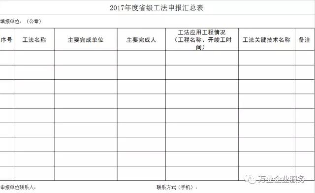 (七)2017年度省級工法申報匯總表,其電子版連同工法文本電子文檔發(fā)至郵箱[email protected]。