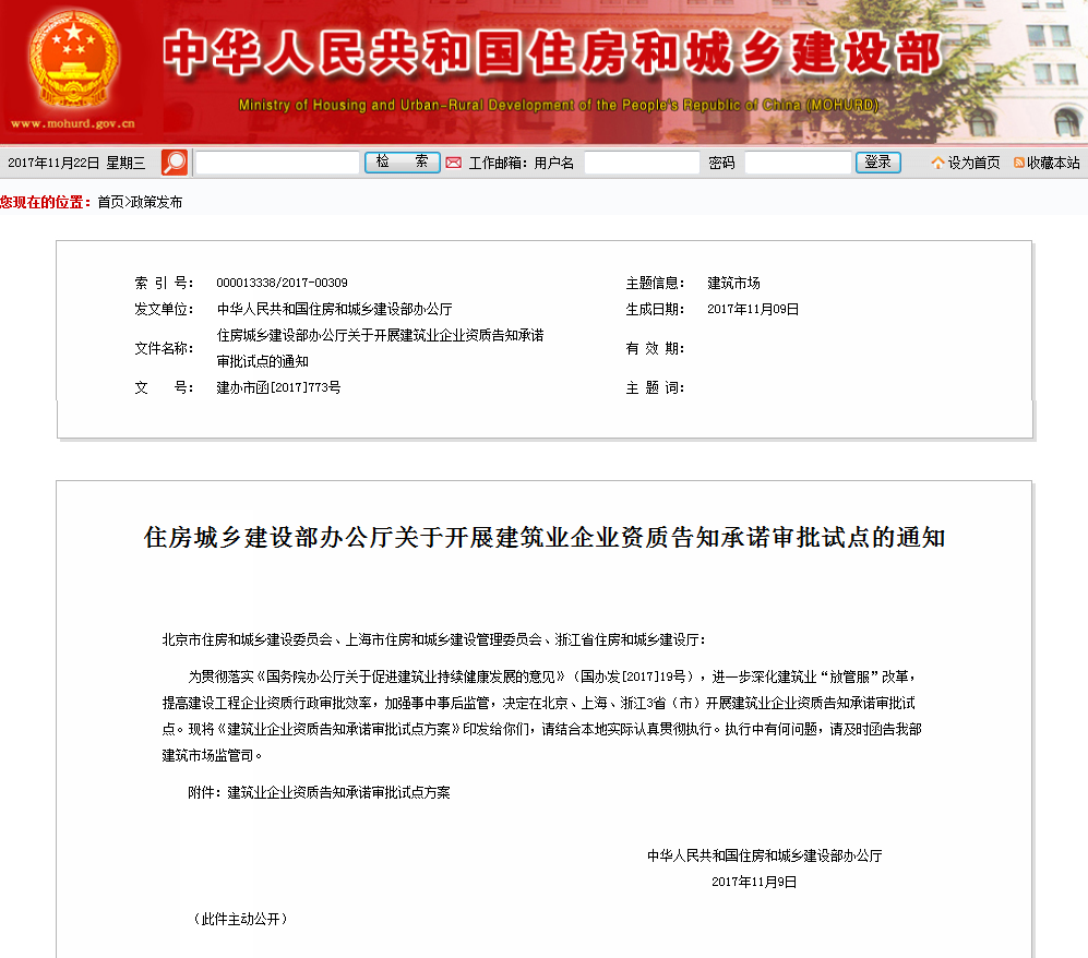 按照地方自愿原則,確定以建設工程企業(yè)較多、市場監(jiān)管水平較高、電子化資質審批成效明顯的北京市、上海市、浙江省作為試點地區(qū),對工商注冊地為試點地區(qū)的建筑工程、市政公用工程施工總承包一級資質開展告知承諾審批試點。