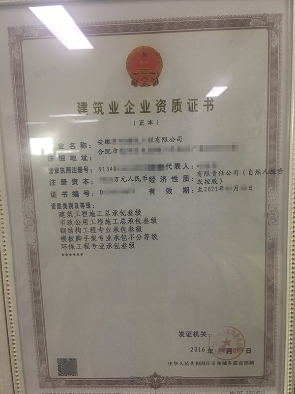 級(jí)別:建筑工程三級(jí)+鋼結(jié)構(gòu)三級(jí)+市政三級(jí)+環(huán)保三級(jí)+模板腳手架不分等級(jí)