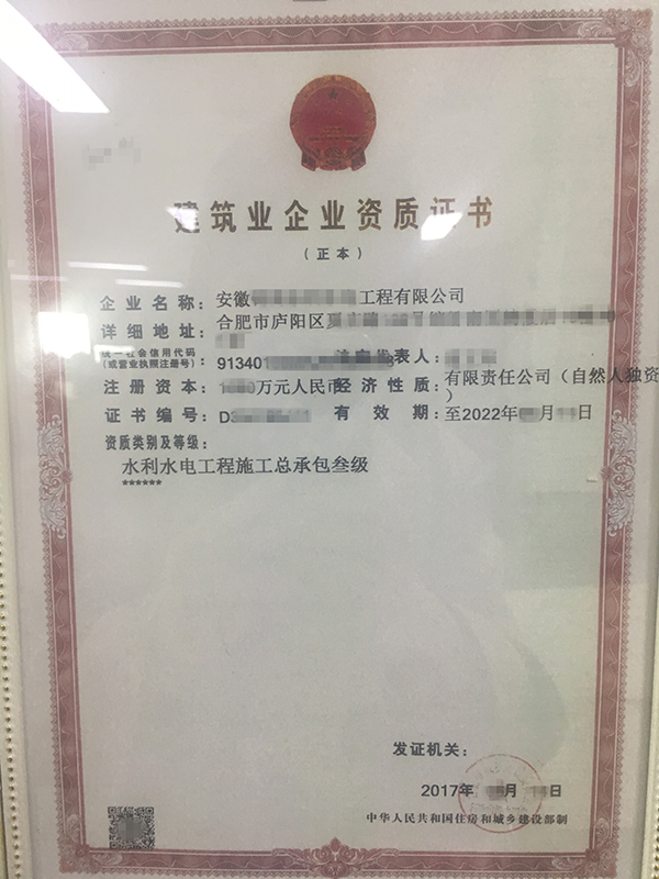 級別:水利水電施工總承包三級
