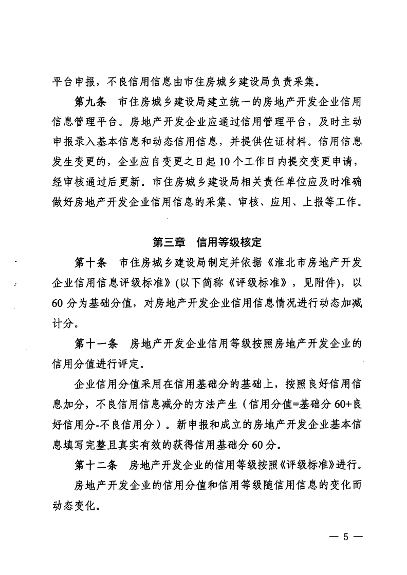 重磅消息!淮北市住房和城鄉(xiāng)建設(shè)局官網(wǎng)昨日發(fā)布關(guān)于印發(fā)《淮北市房地產(chǎn)開(kāi)發(fā)企業(yè)信用管理辦法》的通知(淮住建規(guī)【2022】1號(hào))文件,擬對(duì)開(kāi)發(fā)商信用進(jìn)行評(píng)級(jí),并根據(jù)開(kāi)發(fā)企業(yè)信用不同等級(jí)實(shí)施差異化管理,為規(guī)范房地產(chǎn)開(kāi)發(fā)經(jīng)營(yíng)行為,促進(jìn)房地產(chǎn)業(yè)持續(xù)健康穩(wěn)定發(fā)展提供政策指引。具體內(nèi)容如下: